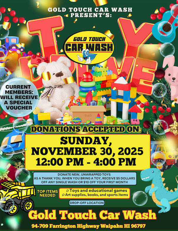 ** Current members will receive a special voucher.** As a thank you when you bring a toy, that day receive $5 off any single wash or $10 off your first month Midas Touch Unlimited Wash Plan!